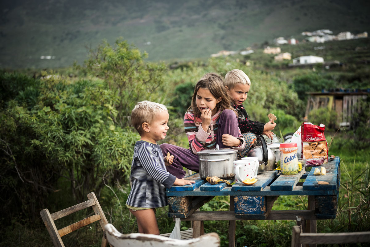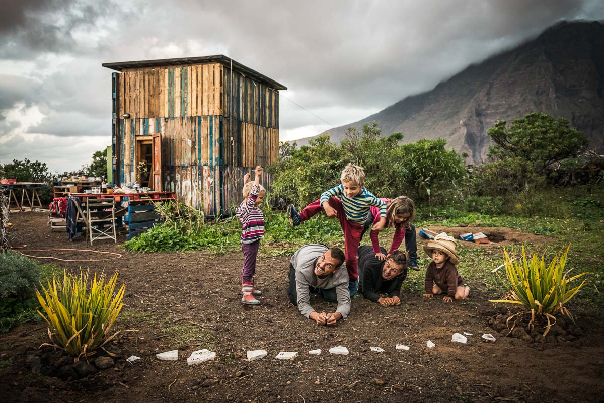 Ein Zuhause aus Paletten, gebaut zwischen Plantagen auf El Hierro, der kleinsten der Kanarischen Inseln. Hier lebt die Familie Streblin mit ihren vier Kindern.